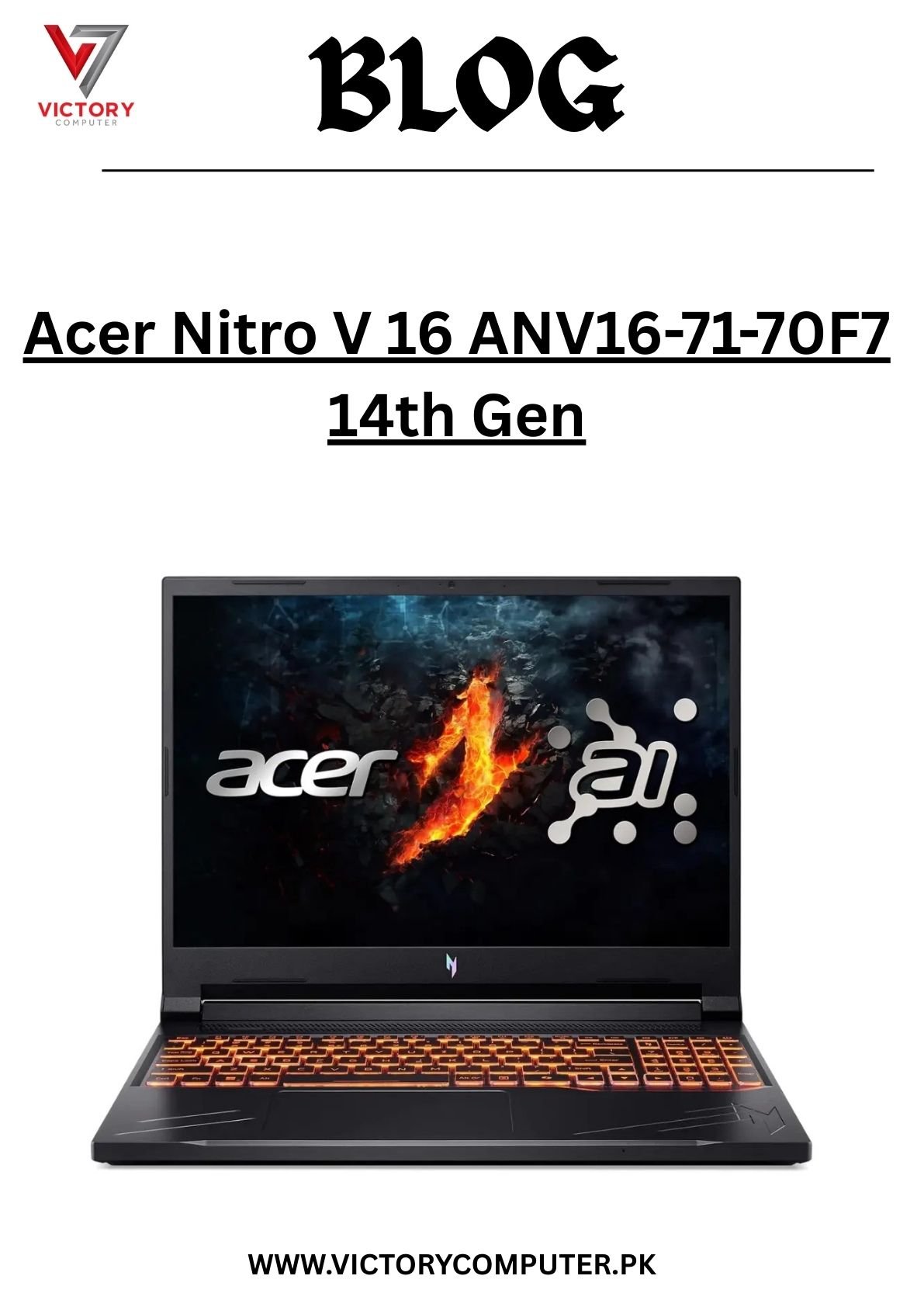 Order the Acer Nitro V 16 ANV16-71-70F7 (14th Gen) from Victory Computers today and enjoy premium performance at the best price.