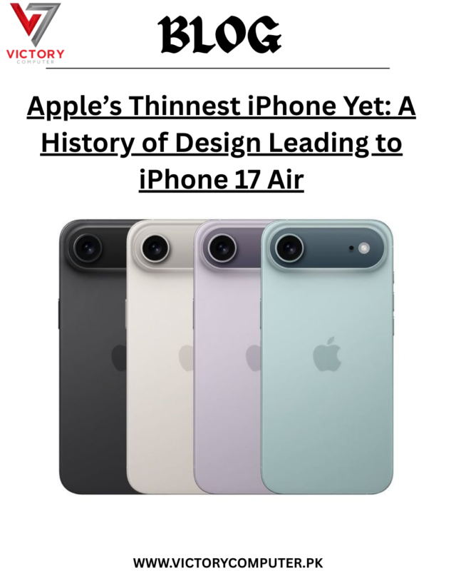 11 Sep Apple, Blog, Guide By Victory Computer, Popular, Transfer, VictoryComputer, Whatsapp Apple’s Thinnest iPhone Yet: A History of Design Leading to iPhone 17 Air September 11, 2025 By Victory Computer PK 0 comments The iPhone 17 Air ????, with its 6.0mm slim body, is officially Apple’s thinnest iPhone ever. But ... Continue reading