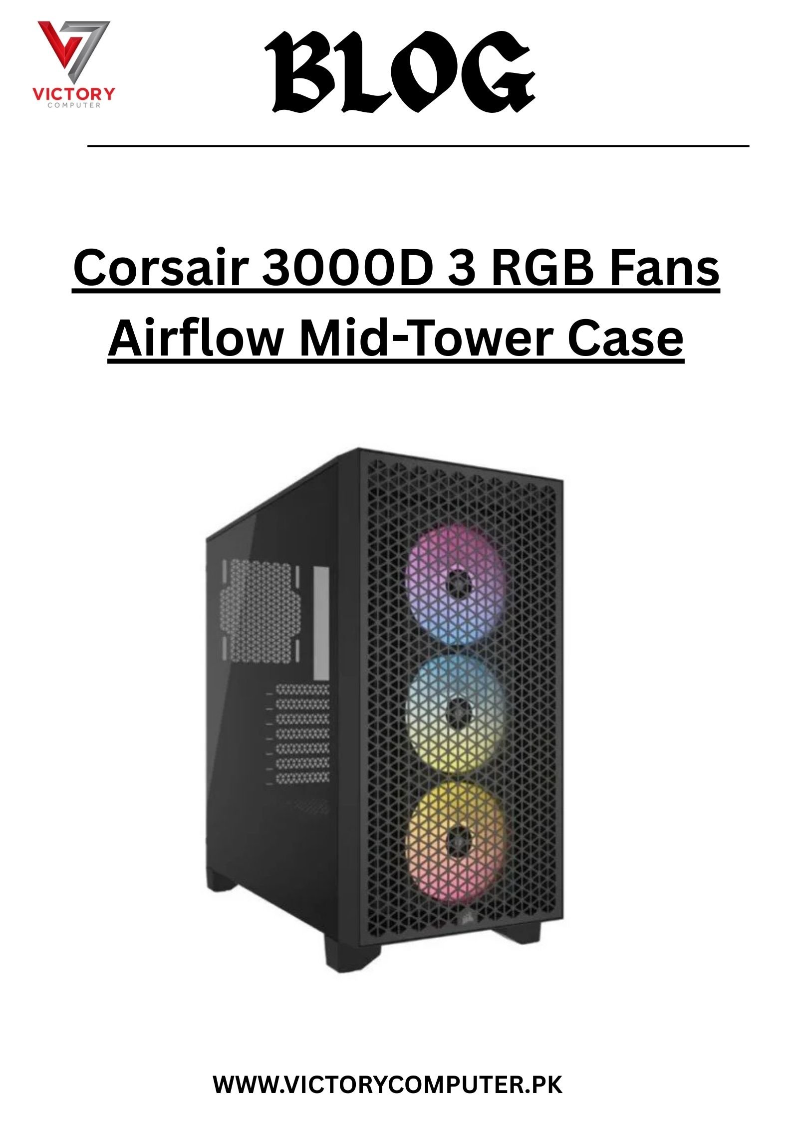 Get the Corsair 3000D Airflow Mid-Tower Case with 3 RGB Fans at the best price in Pakistan (2025) from Victory Computers with official warranty & nationwide delivery. ????✨
