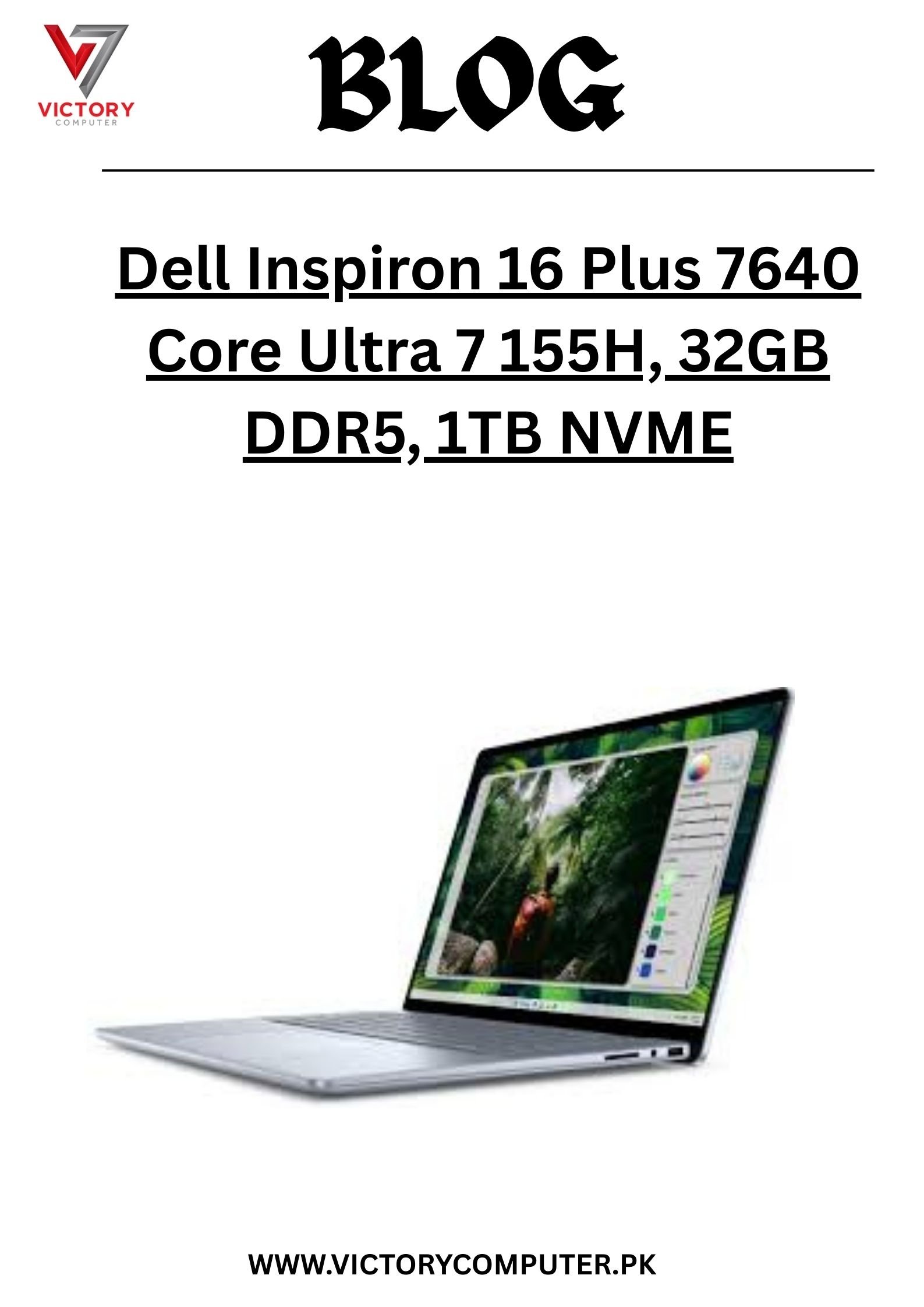 The Dell Inspiron 16 Plus 7640 (Ultra 7 155H, 32GB, 1TB) is one of the best Dell laptops in Pakistan 2025 for students, professionals, and creators. It offers flagship-level performance, extra storage, and premium design at a much lower price than Dell XPS or Alienware.