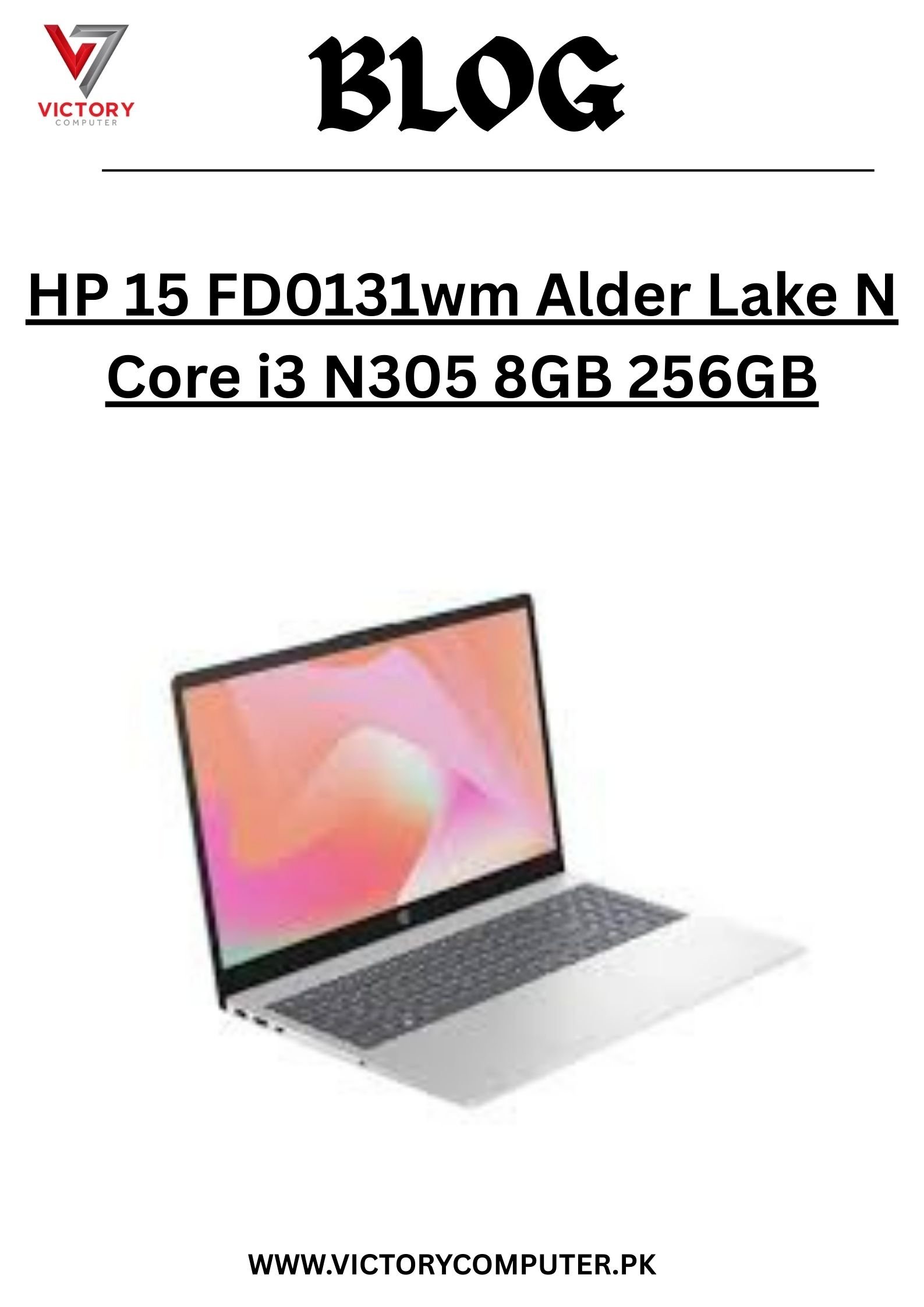 At Victory Computers, we provide the best laptop price in Pakistan 2025 for the HP 15 FD0131wm (Intel Core i3-N305, 8GB RAM, 256GB SSD) with warranty and fast delivery nationwide. ????✨