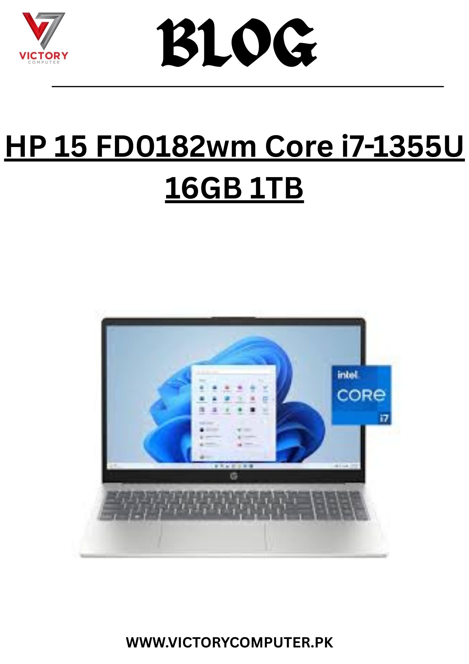 At Victory Computers, we provide the best laptop price in Pakistan 2025 for the HP 15 FD0182wm (Core i7-1355U, 16GB RAM, 1TB SSD) with warranty and fast nationwide delivery. ????✨
