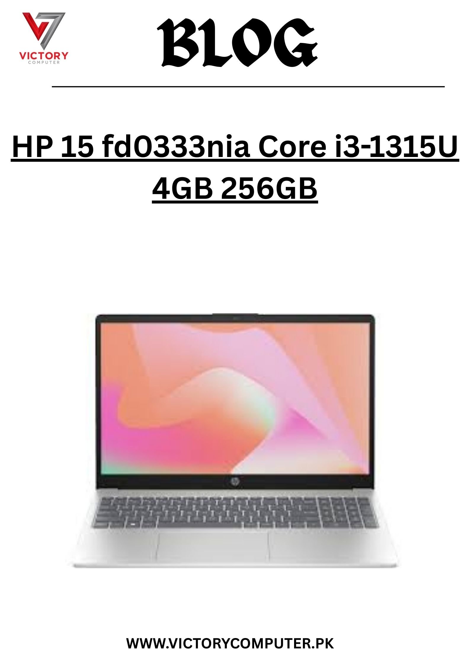 At Victory Computers, we provide the best laptop price in Pakistan 2025 for the HP 15 FD0333nia (Core i3-1315U, 4GB RAM, 256GB SSD) with warranty and nationwide delivery. ????✨