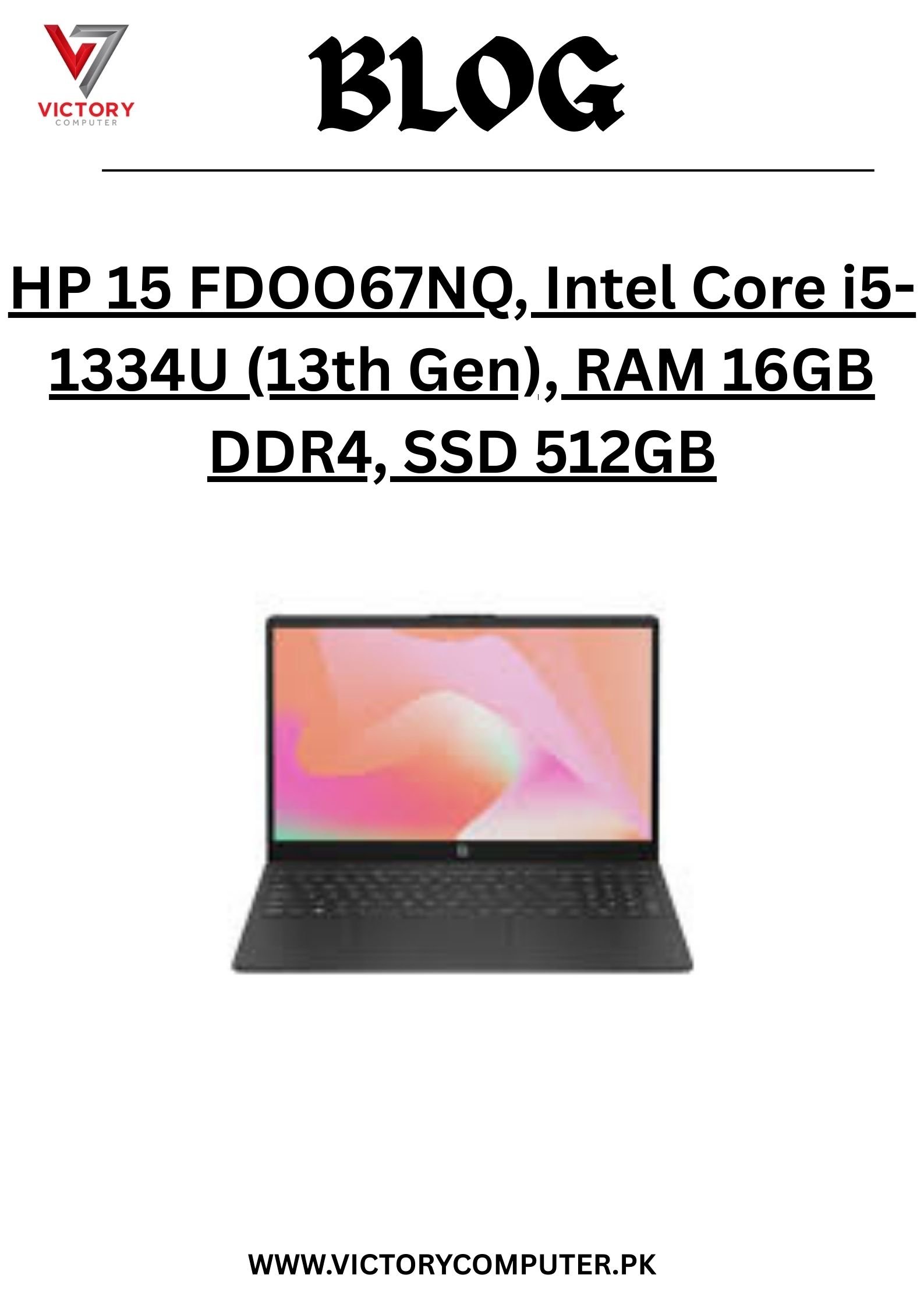At Victory Computers, we bring you the best laptop price in Pakistan 2025 for the HP 15 FDOO67NQ (Core i5-1334U, 16GB RAM, 512GB SSD) with official warranty and fast delivery nationwide. ????✨