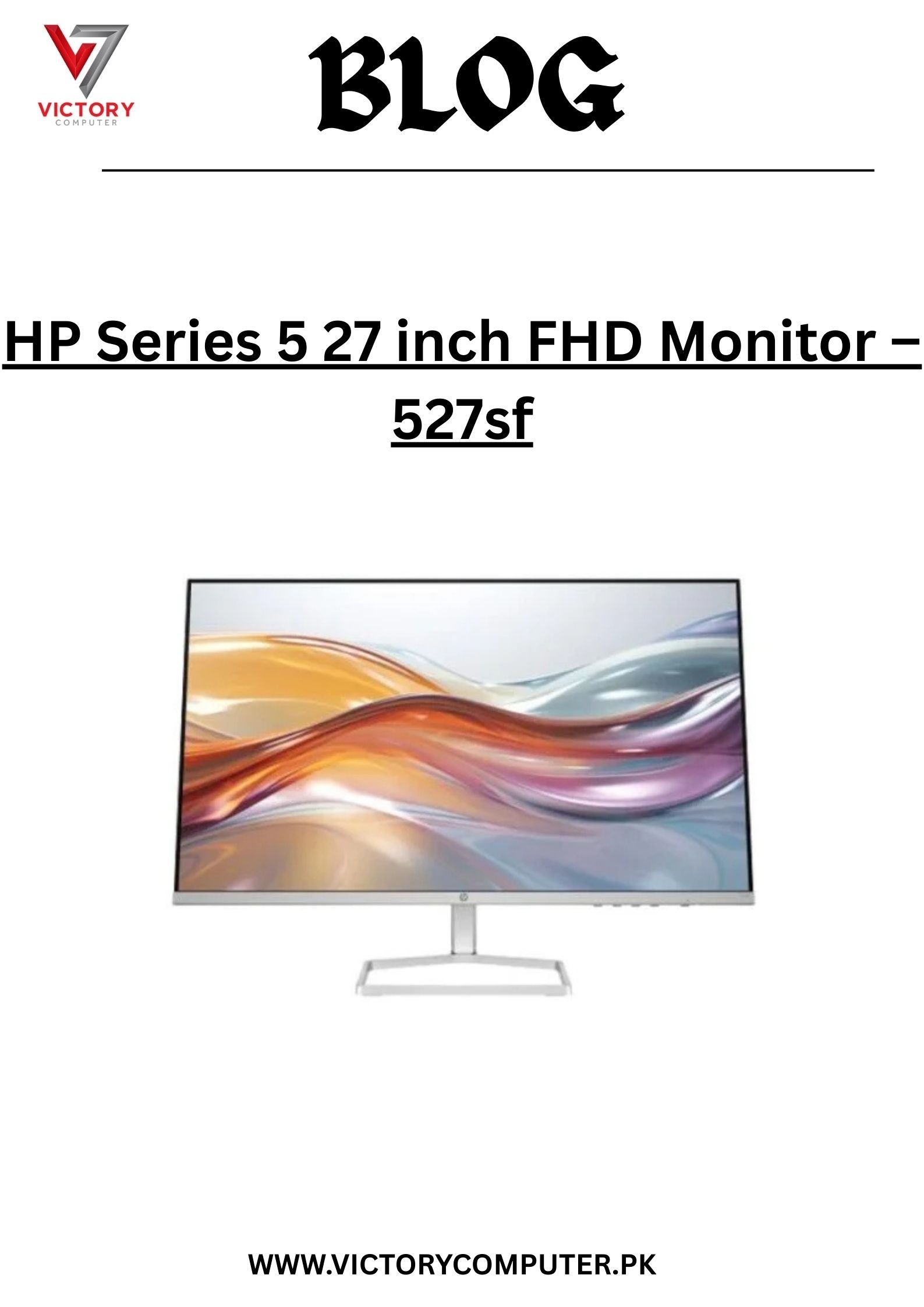 Get the HP Series 5 27″ FHD Monitor – 527SF at the best price in Pakistan (2025) from Victory Computers with official warranty & nationwide delivery. ????✨