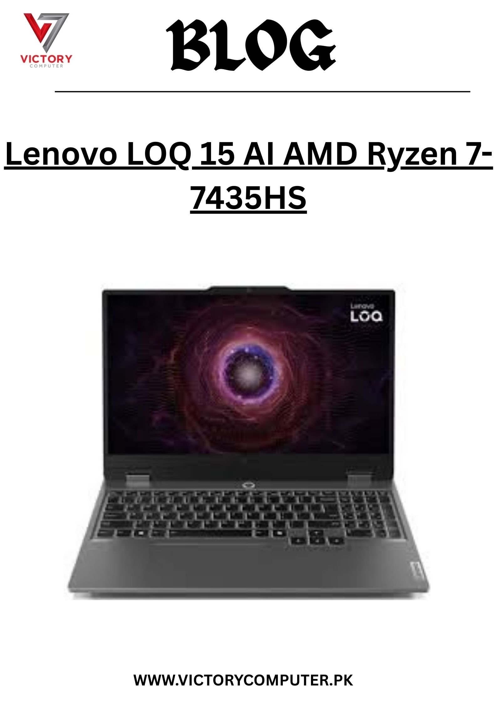 Buy the Lenovo LOQ 15 AI (Ryzen 7 7435HS | RTX 4050) at the best price in Pakistan 2025 with official warranty & safe nationwide delivery from Victory Computers. ????✨