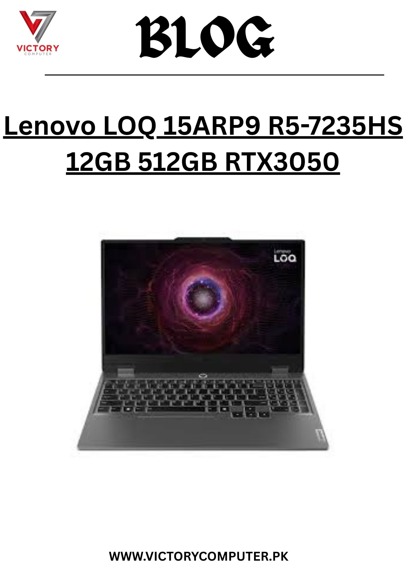 Get the Lenovo LOQ 15ARP9 (Ryzen 5-7235HS | 12GB | 512GB | RTX 3050) at the best price in Pakistan 2025 with warranty & safe nationwide delivery from Victory Computers. ????✨