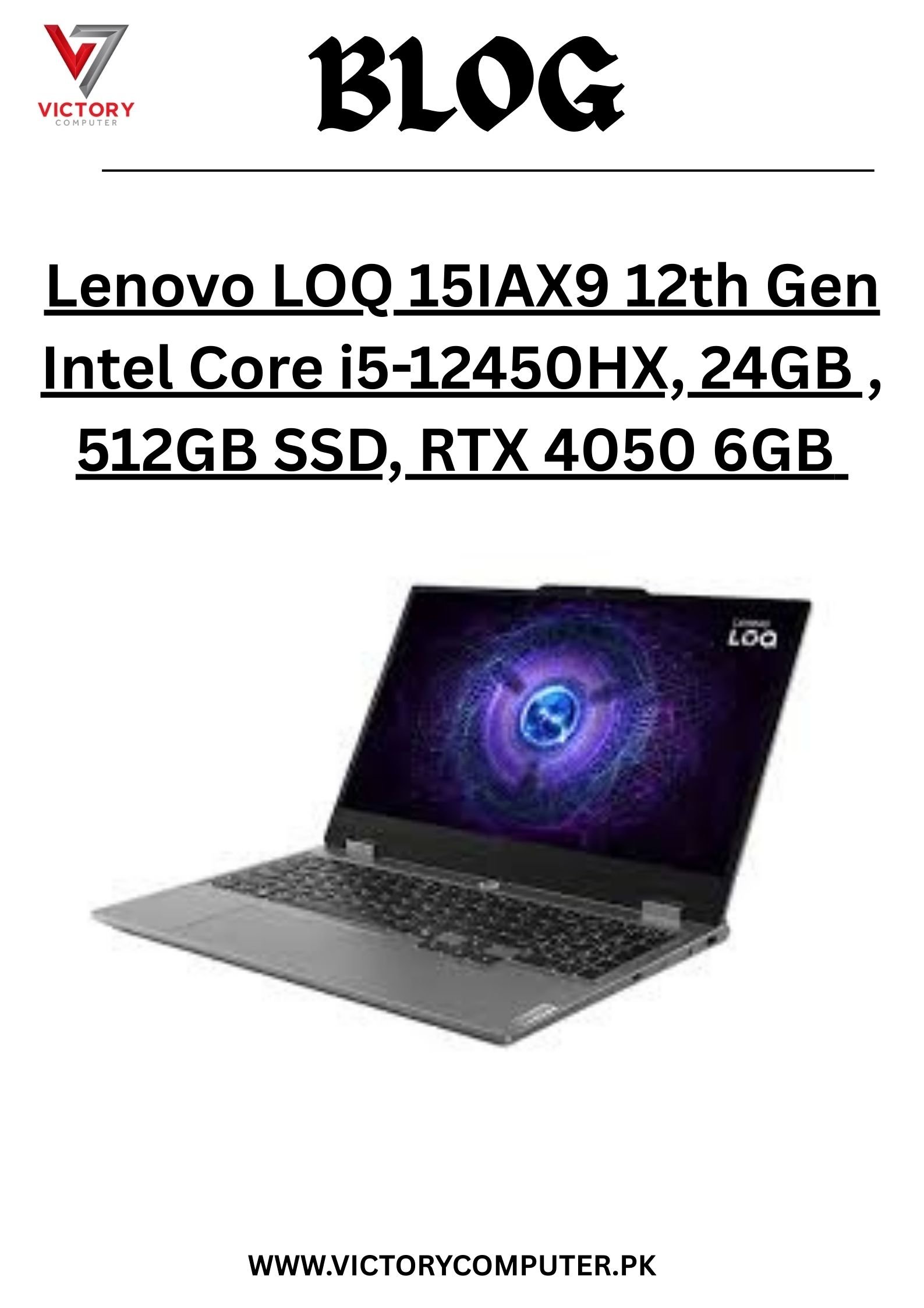 Get the Lenovo LOQ 15IAX9 (i5-12450HX | 24GB RAM | 512GB SSD | RTX 4050) at the best price in Pakistan 2025 with warranty & nationwide delivery from Victory Computers. ????✨