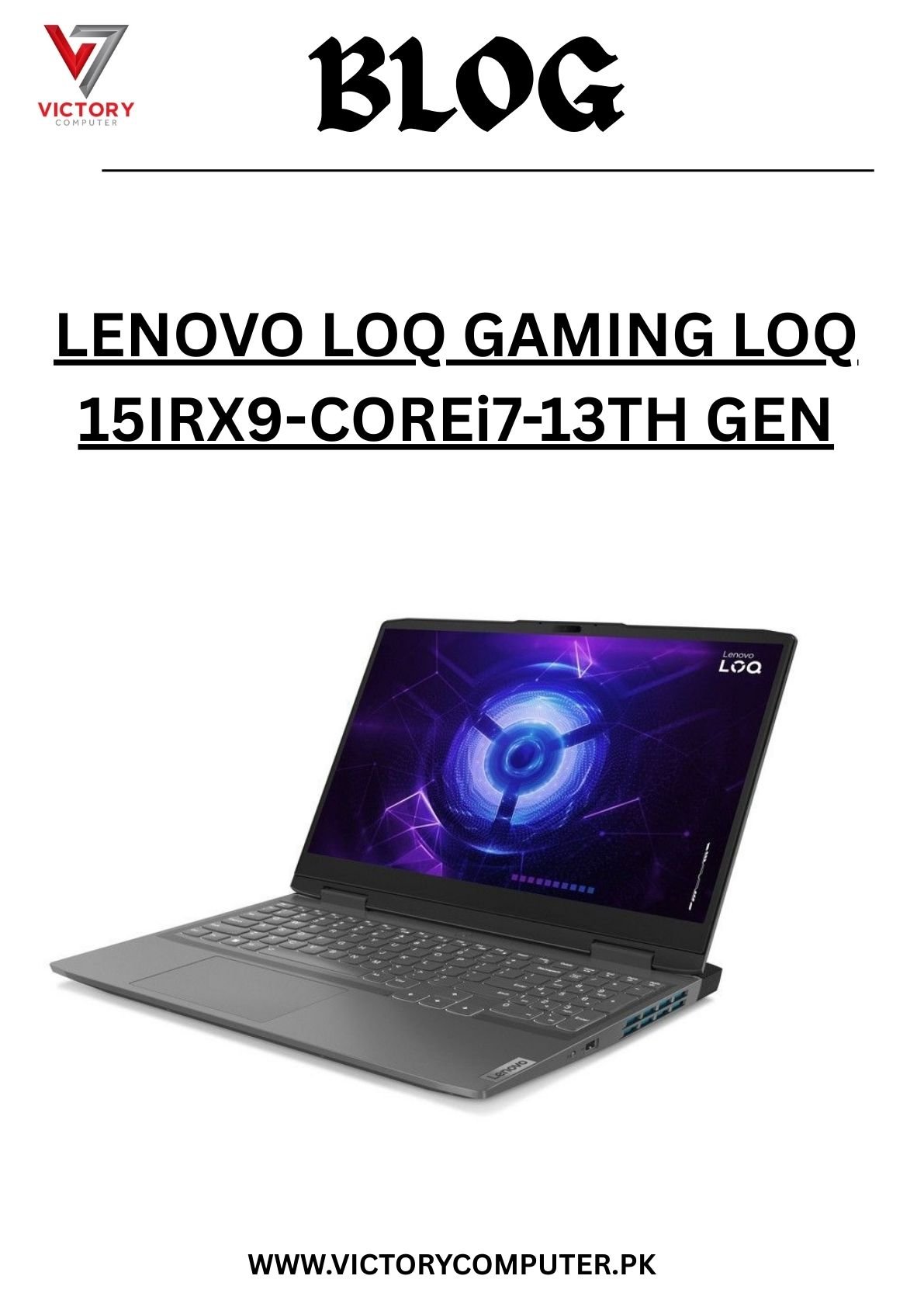 If you’re looking for the best place to buy the Lenovo LOQ Gaming LOQ 15IRX9 Core i7 13th Gen in Pakistan, choose Victory Computers – the trusted laptop store for gamers and professionals.