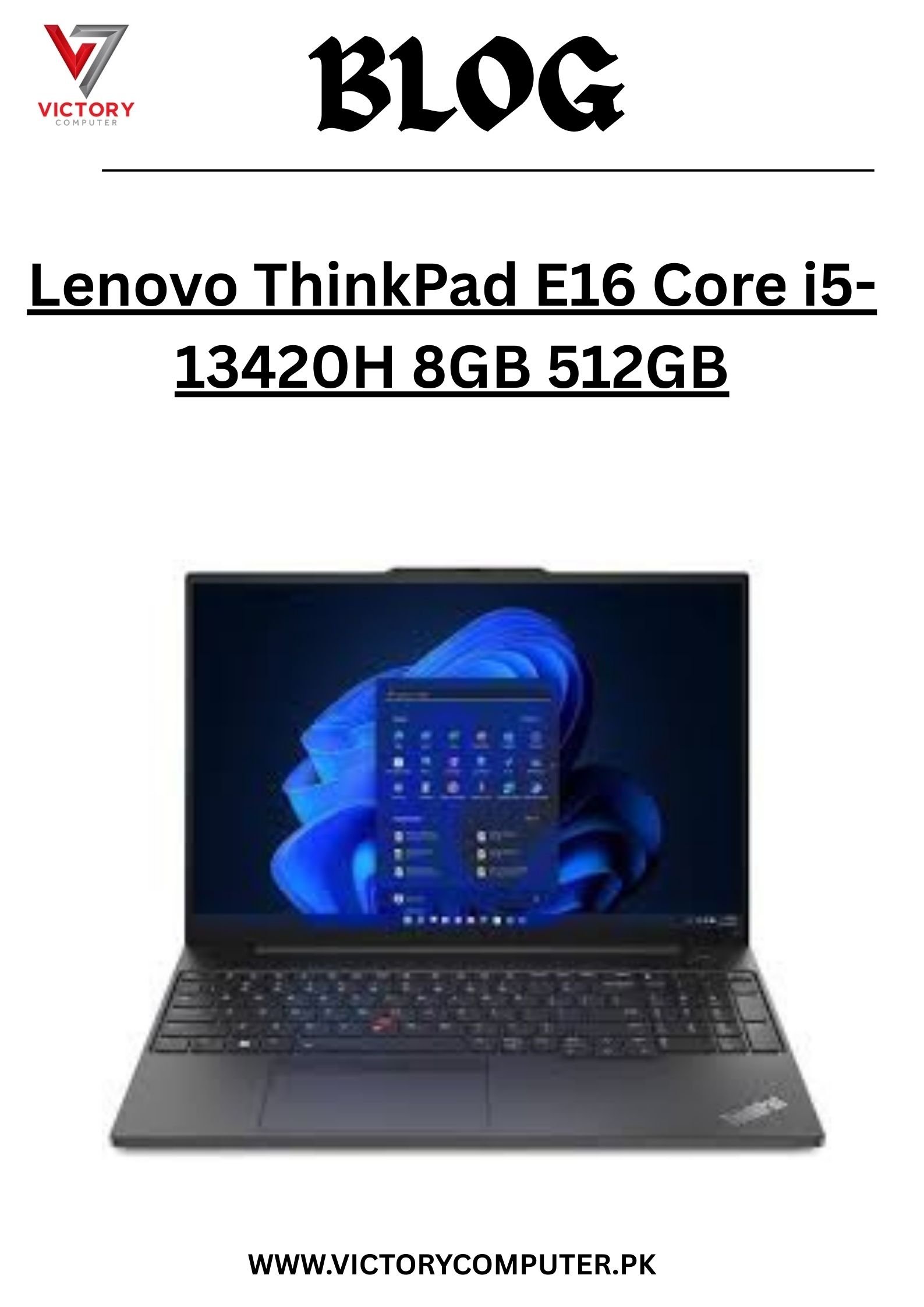 Get the Lenovo ThinkPad E16 (Core i5-13420H | 8GB RAM | 512GB SSD) at the best price in Pakistan 2025 from Victory Computers with official warranty & nationwide delivery. ????✨