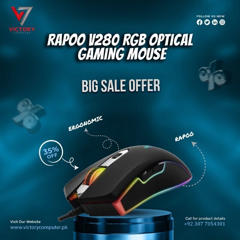 For authentic products and reliable service, consider purchasing from Victory Computer. As a trusted retailer in Pakistan, Victory Computer offers a wide range of gaming peripherals, including the Rapoo V280 RGB Gaming Mouse. Visit their website: www.victorycomputer.pk to explore their offerings.